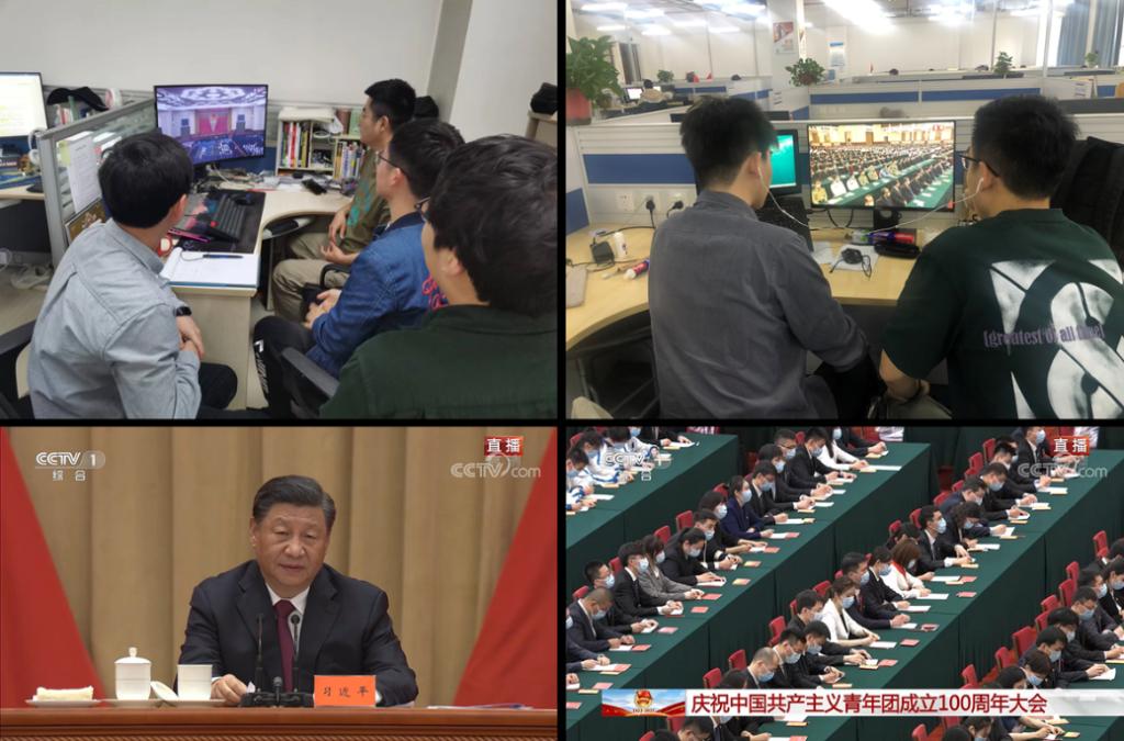“青春孕育无限希望,青年创造美好明天。一个民族只有寄望青春、永葆青春,才能兴旺发达”。2022年5月10日上午,精密所博士第四支部书记王飞组织全体同志线下观看了“庆祝中国共青团成立100周年大会”,并深刻讨论了观看感悟。