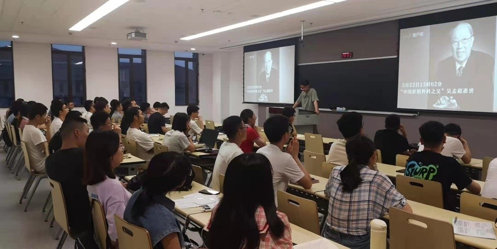 硕9005党团支部的于鸿伟带领大家回顾了的袁隆平院士与吴孟超院士的生平事迹、重要贡献与他们身上所闪耀的时代精神。袁隆平院士为国为民为事业不畏艰难、勇于付出,打开杂交水稻“王国”的大门;还把自己研究的成果毫无保留地分送给国内其他研究单位,不计名利、甘为人梯。而吴孟超院士始终不变入党初心,爱党爱国,在基础医学前沿做出了一流的成绩。于鸿伟说:“缅怀这些院士的最好方式就是将他们可贵的精神财富化为前行的动力,我们应当接过前辈们的接力棒,不断前进!