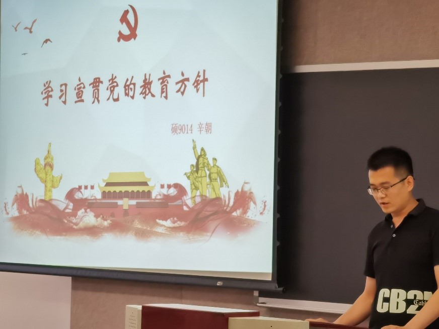 硕9007&9014党团支部的辛朝领学时提到,党的教育方针即是:教育必须为社会主义现代化建设服务、为人民服务,必须与生产劳动与社会实践相结合,培养德智体美劳全面发展的社会主义建设者和接班人。他还从自身视角出发,针对教育方针中新增的两个“必须”与“劳”谈了谈自己的感悟:“‘必须’进一步体现了国家在现代化建设中,结合国情,对教育的目的与过程的重视;‘劳’则强调了我们需要树立正确的劳动观点和劳动态度,尊重并热爱劳动和劳动人民,培养艰苦奋斗无私奉献的精神。”