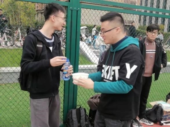 新生篮球赛于2021年10月11日正式拉开序幕。篮球赛期间,球员们在球场上挥洒汗水,观众们在场边高声喝彩,尽管天气寒冷,可依然抵挡不住他们的热情。因此硕1004班志愿服务新生篮球赛的进行,向场边观众和场上运动员提供饮用水。