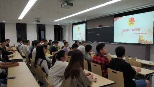 2021年10月28日21:00,硕1004班同学集聚二号巨构2-6004,开展“请党放心,强国有我”主题座谈会。在会上,同学们共同观看青少年诗朗诵的视频。他们的声音催人奋进,振奋人心,让同学们深刻体会到身上所肩负的重任,未来属于青年,我们青年人必将起到中流砥柱的作用。