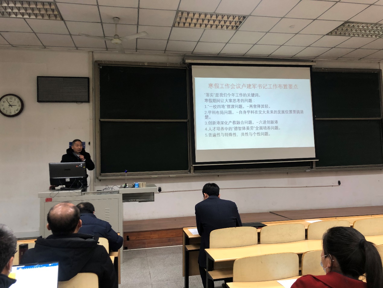 陈雪峰院长传达了学校寒假工作会议精神,王树国校长作《进入新发展阶段 贯彻新发展理念 构建新发展格局》主题报告,指出2020年全校“下好‘先手棋’,打好‘主动仗’,抢占制高点”,顺利完成了“十三五”发展目标;校党委书记卢建军强调“落实”是2021年工作的关键词,落实国家创新驱动发展战略,逐步开展教研一体、学科交叉、产教融合深度改革,汤不热视频