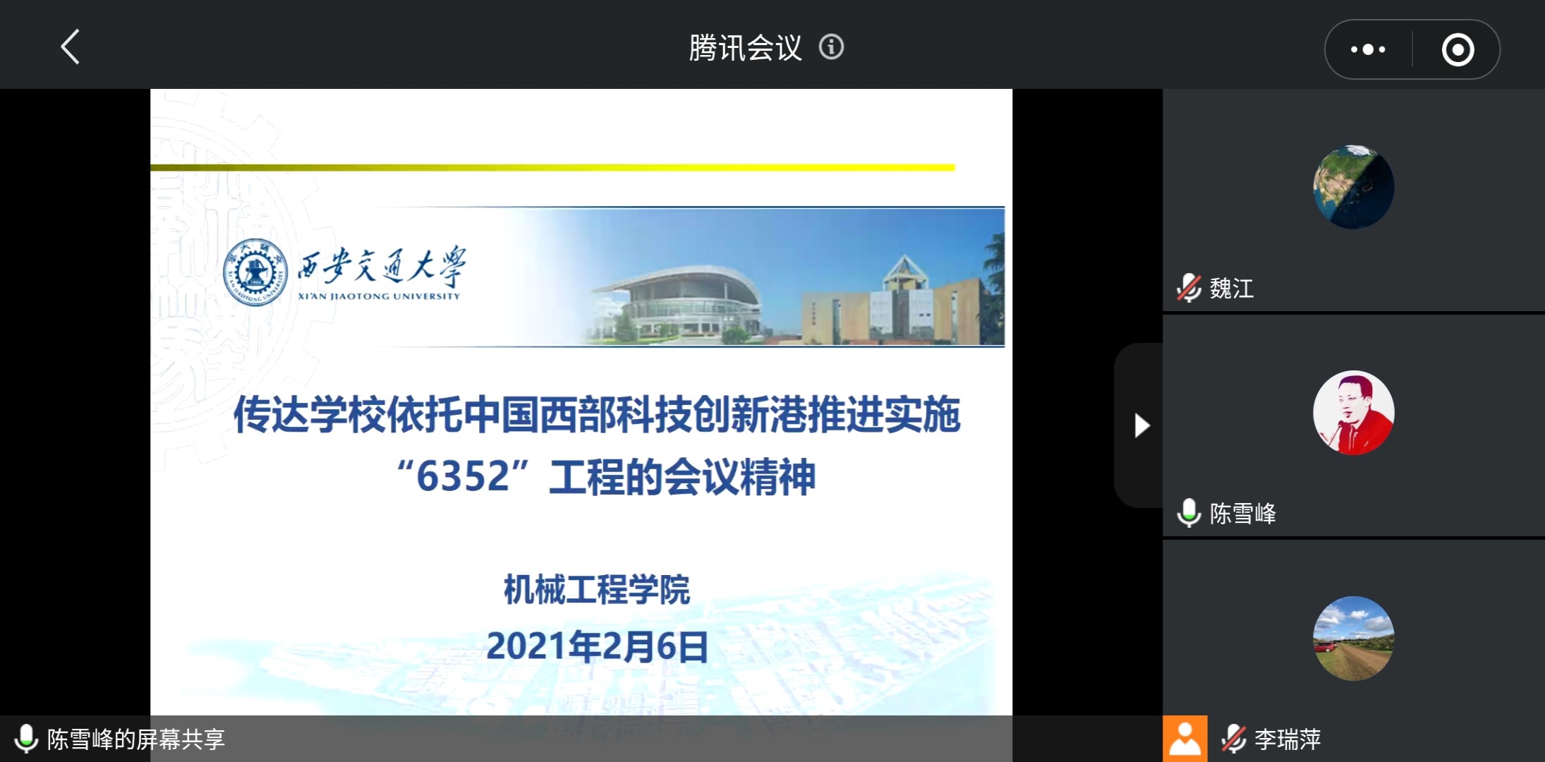 随后,陈雪峰院长重点介绍了学校依托中国西部科技创新港推进“6352”工程的实质内涵,即深入学习贯彻习近平总书记来陕考察重要讲话精神,依托中国西部科技创新港推进实施“6352”工程,“政产学研用金”6进创新港;通过建设现代产业学院、未来技术学院、丝路国际学院3个学院(孵化器),实现人才培养模式变革;营造“政策、金融、服务、配套、交易”5大生态,打造“创投、交易”2个支撑平台,探索产学研深度融合有效举措、创新路径,聚力将创新港打造成为陕西最大的孵化器和科技成果转化“特区”。陈院长表示:“要保持战略定力,创新港是学校发展重要战略与契机”。
