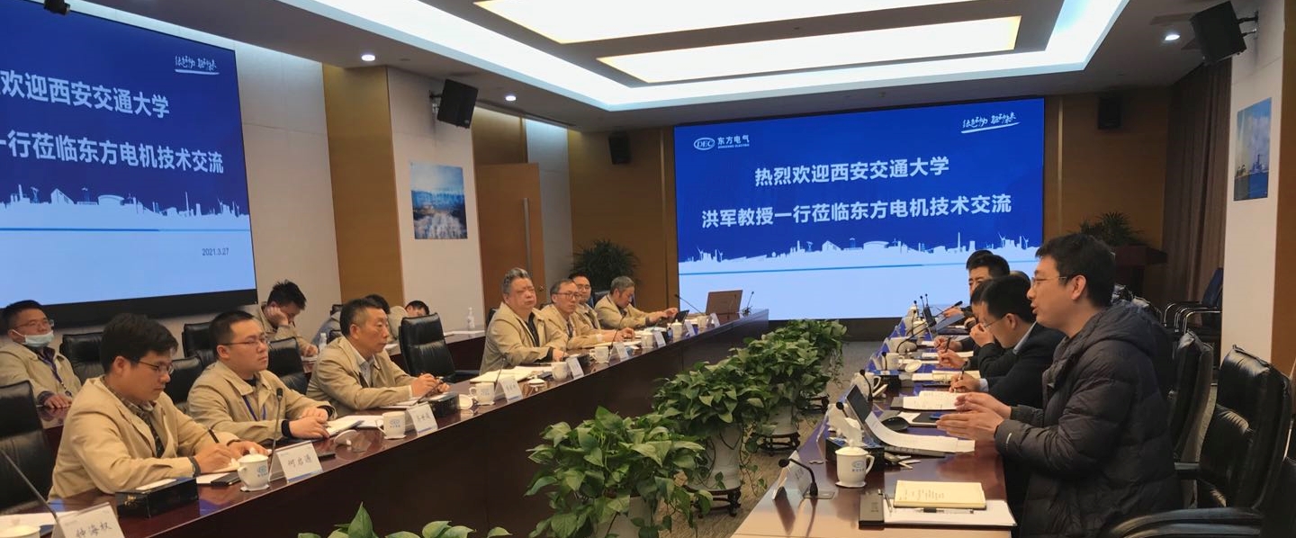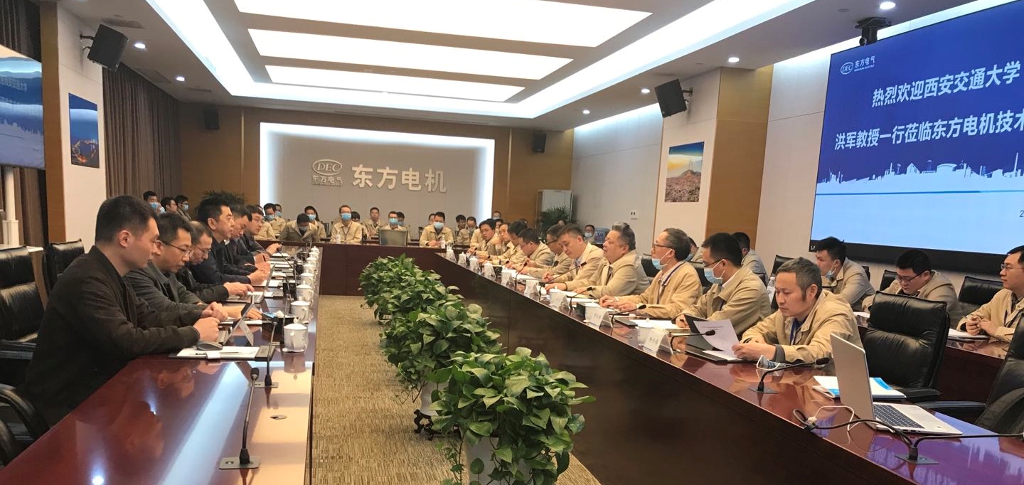 2021年3月27日,现代设计及转子轴承系统教育部重点实验室(以下简称:实验室)团队代表赴四川德阳东方电气集团东方电机有限公司(以下简称:东电公司)开展技术交流。实验室团队代表与东电公司领导专家就高端轴承的设计、制造、检测、运维环节面临的关键技术难题开展了深入探讨与交流。