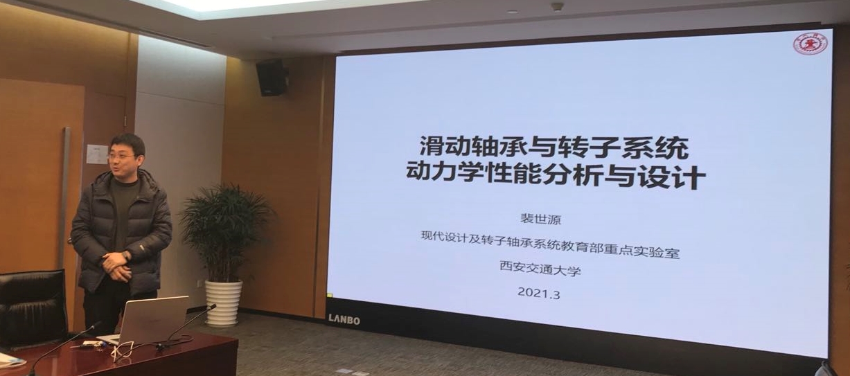 裴世源副教授做题为“滑动轴承与转子系统动力学性能分析与设计”的专题报告