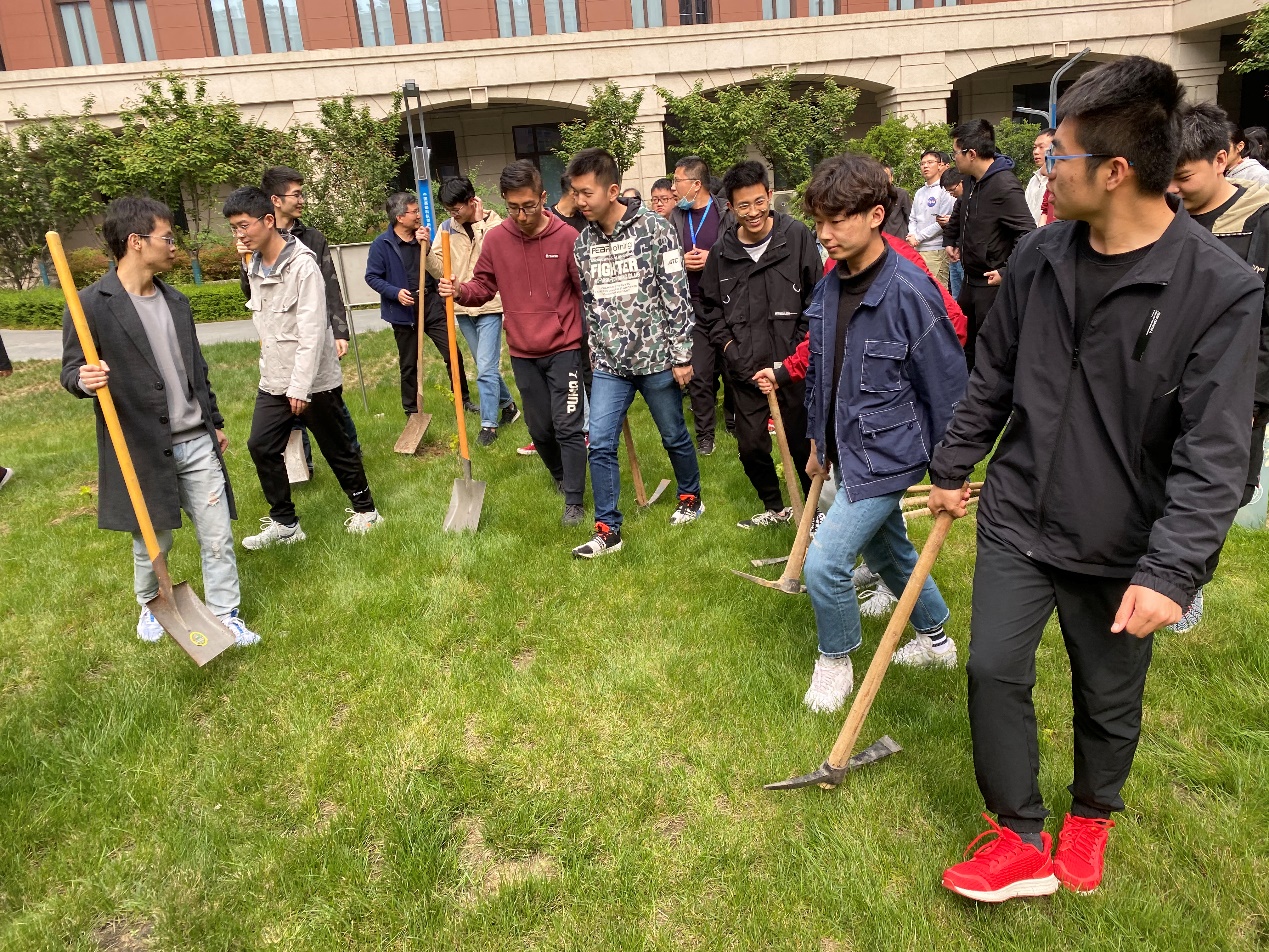 新疆葡萄名远扬,高端院内满园香。种植活动伊始,学院工会副主席李云龙老师致辞,向大家介绍了葡萄苗的由来,以及我院与新疆大学的深厚友谊。随后,丁立库、杨江坤、苏宇三位老师讲解葡萄苗种植要点,叮嘱大家“一定要挖30厘米见方的坑,这样葡萄苗成活率才高”,并组织师生列队分组、划分区域、领取工具。葡萄种植过程中,大家严格要求,拉线取直,精准测量……2个小时的劳动,大家干得热火朝天。