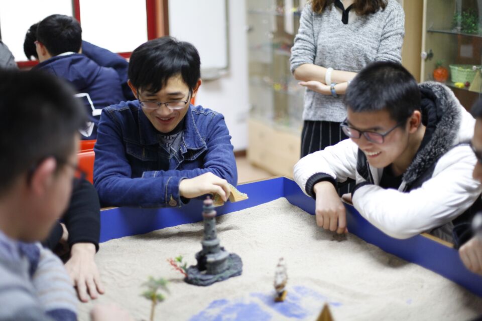 在此期间,吴老师时不时的让同学们挪动自己的位置,从不同的角度看下自己摆放的道具以及整个沙盘的画面,再提出各自的想法和建议。本次活动以游戏形式展开,在轻松愉悦的氛围下顺利完成。吴老师游戏结束后对同学们在游戏中的表现进行了评价,以及提出同学们对应于自我与人际关系方面的思考和建议。不仅极大地调动了同学们的积极性,还让同学们感触颇丰,受益匪浅,更使得同学们对自我与人际交往方面有了一个全新的认识和理解。