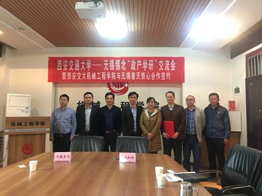 王小鹏副教授与无锡普天铁心股份有限公司梁林秋副董事长签署合作协议,进一步深化无锡普天铁心股份有限公司与西安交大的合作。