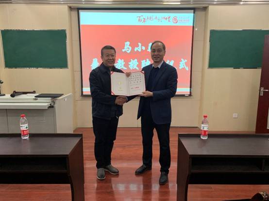荣命哲副校长为马小骏颁发兼职教授聘书,欢迎加入西安交大,并希望日后双方加强合作,为我校以机械学科为代表的工科优势专业人才培养输送更多行业一线经验,助力学院开设前沿创新课程。