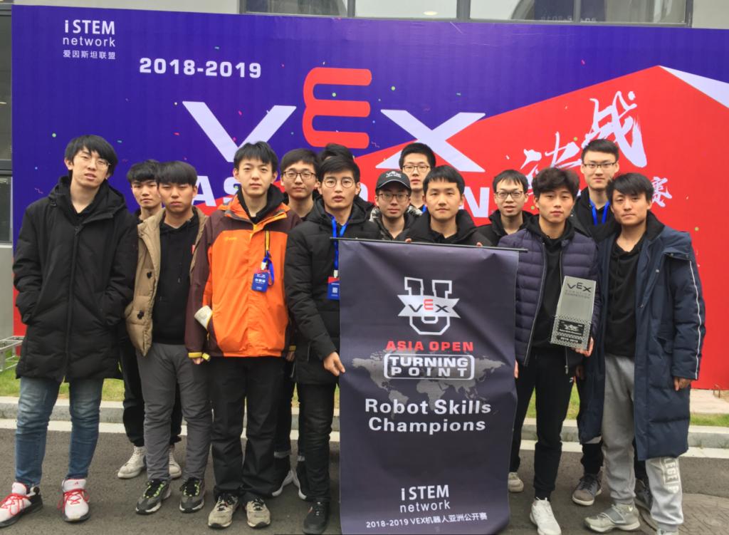 VEX机器人代表队再次获得技能赛冠军,并获得创新奖和精彩奖,2019年4月VEX机器人队将参加2018-2019赛季VEX机器人世界锦标赛。