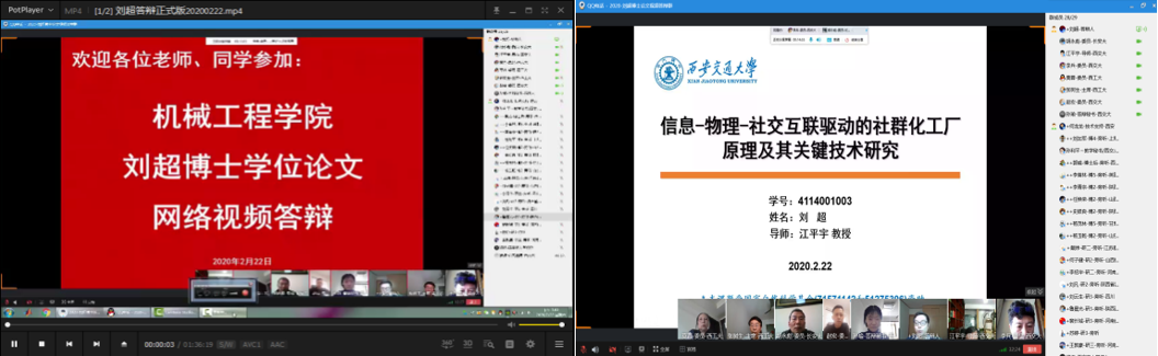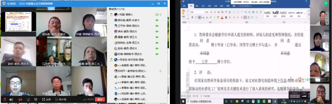 教学秘书以及课题组部分研究生全程旁听了网上答辩全过程。参加本次在线视频答辩的29人员中,有2人来自新加坡和英国,其余人员分别来自西安、上海、江苏、山东、河南、山西、甘肃等不同省份的不同地区。