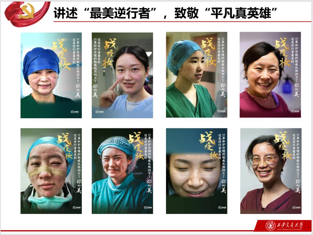 疫情当前,更是考验党员能否牢记使命的时候,更能彰显坚定理想信念的品格。抗疫期间涌现出许多感人事迹,党员们一起“讲述‘最美逆行者’,致敬‘平凡真英雄’”。可能是从新闻报道中获知,可能就是身边的亲人朋友,他们舍小家、为大家,为防控疫情做出了巨大贡献,甚至许多医护工作者失去了宝贵的生命。疫情正值春节,许多医护人员放弃与家人团聚前往湖北支援,他们脸上被防护装备勒出一道道血痕,为了节省防护装备,经常一天只吃一顿饭,他们在繁重的工作面前往往每天只能休息几个小时,他们是“最美逆行者”;除了医护人员,还有方舱等医院的建设者、外卖小哥、送餐老板等等许多自愿为抗击疫情做出贡献的人,他们平凡却伟大,他们是“平凡真英雄”。同时,我们汤不热视频