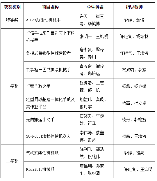 参加决赛的同学通过线上答辩,表现优异,获得评委认同和好评。本届大赛共设2个特等奖,我校参赛作品“A-Bot线驱动机械手”经专家推荐,获得特等奖。